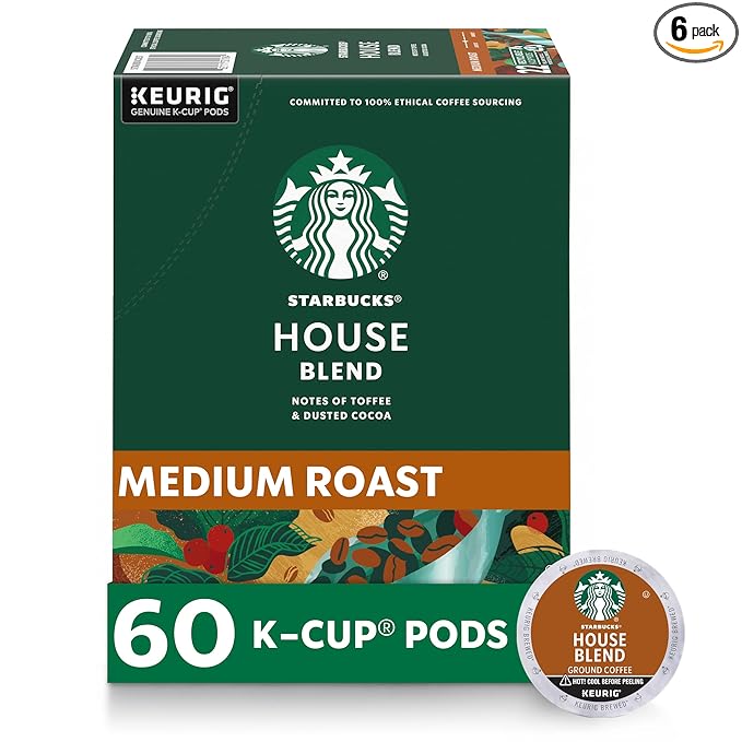 Starbucks House Blend K-Cup Coffee Pods bring you a medium roast coffee experience that’s been perfected since 1971. A blend of the finest Latin American beans, roasted to a rich, dark chestnut color, this coffee is full of flavor and balance. Enjoy the warm, inviting notes of toffee and cocoa, with just a touch of sweetness from the roast.